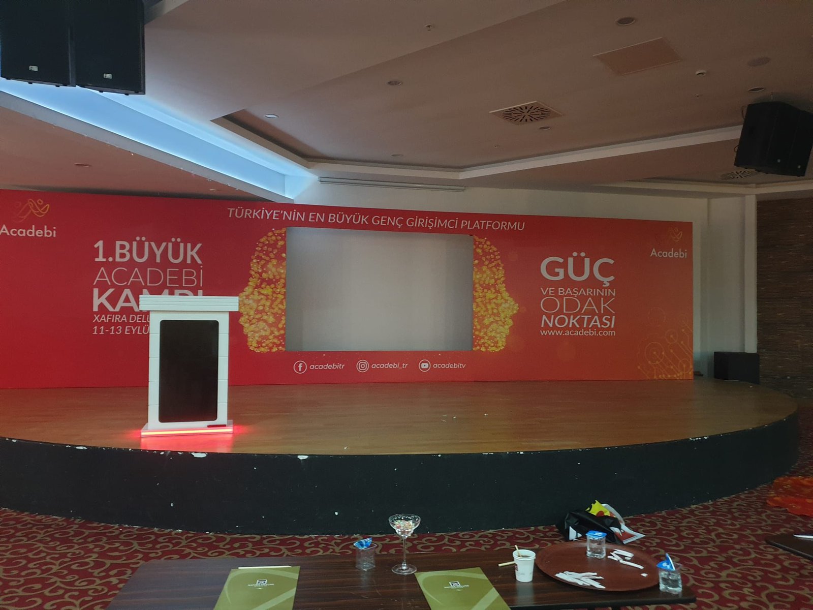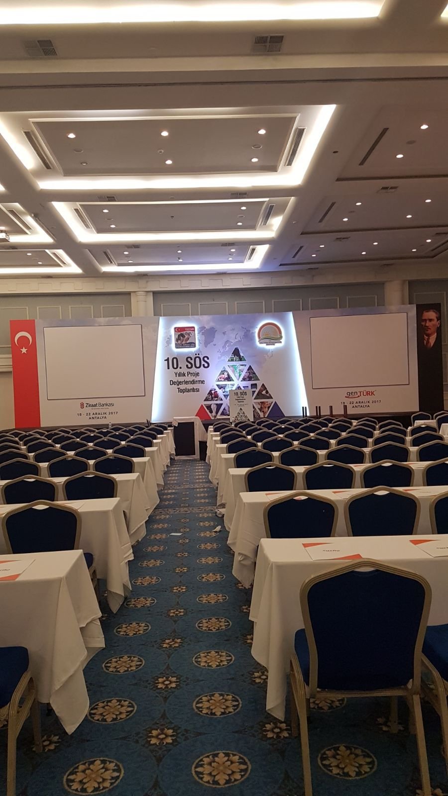 Sahne Dekoru: Kongrelerde sahne dekoru, etkinliğin temasına uygun olarak tasarlanır ve sahnenin görsel çekiciliğini artırır.